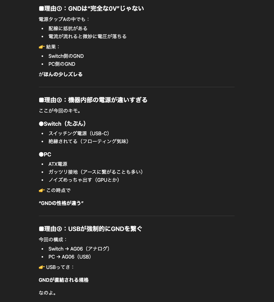 - Switchの音声にグラウンドのノイズが乗り放題だった